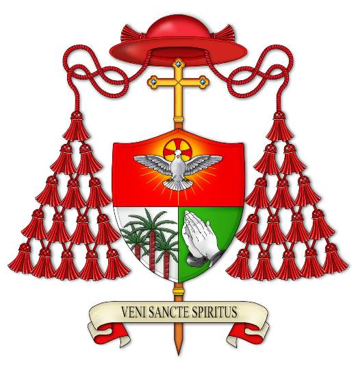 The motto “Veni Sancte Spiritus” – “Come Holy Spirit” – unites all the motifs in my coat of arms. The invocation is for a new Pentecost and recalls the words of the sequence of the Mass of Pentecost – the Golden Sequence – whose rich poetry and deep thoughts have continually sustained my prayer life and vision of ministry. It is not in vain that Jesus told his disciples to wait till they have received the Holy Spirit, the power from on high, (Lk 24:49) who would lead them into all truth (Jn 16:13) and then they would be his witnesses (Acts 1:8). As Church and as individual Christians, we still need the power and warmth of the Spirit’s love in order to urge our feet on the path of truth and move our hearts to love God and one another.