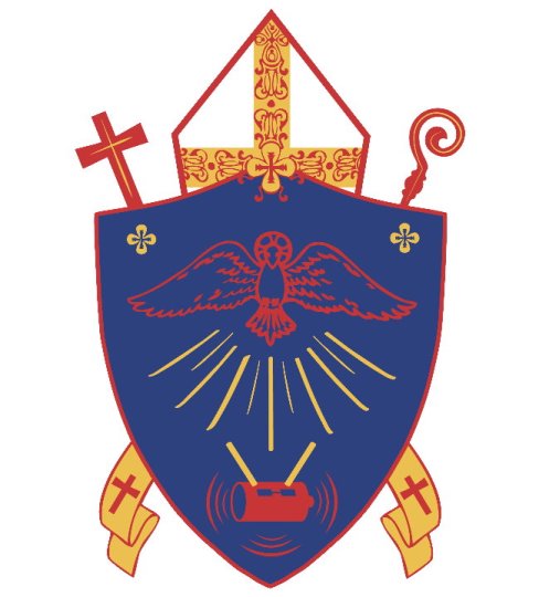 Blue is the colour of our Blessed Mother Mary, whose spouse Joseph, is the patron saint of our diocese. We are connected in a deep way with Our Lady. True to the character of St. Joseph, chaste, humble, reliable and self-effacing, we have also represented him indirectly through reference to our Blessed Mother Mary and her Son. By this, we remind ourselves as a diocese to walk humbly, like St. Joseph, before our God (Mi 6:8) to be chaste and reliable instruments in God’s hands, those whose only desire is to die to self so that Jesus Christ will live and shine out (Gal 2:20) more clearly in our faith, working through love (Gal 5:6) and sustained by the hope of the crown of glory to be won through our perseverance (1 Thess 2:19). This anticipated victory in God’s Kingdom is symbolized by the white (Rev. 7:9) and the golden colours of the mitre and the lappets respectively. We hope to partake in this victory together with and under the leadership of our chief shepherd.